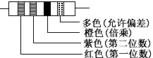 示例 1)在电阻体的一端标以彩色环,电阻的色标是由左向右排列的,图1的电阻为27000Ω±0.5%。 2)精密度电阻器的色环标志用五个色环表示。第一至第3色环表示电阻的有效数字,第4色环表示倍乘数,第5色环表示容许偏差,图2的电阻为17.5Ω±1%